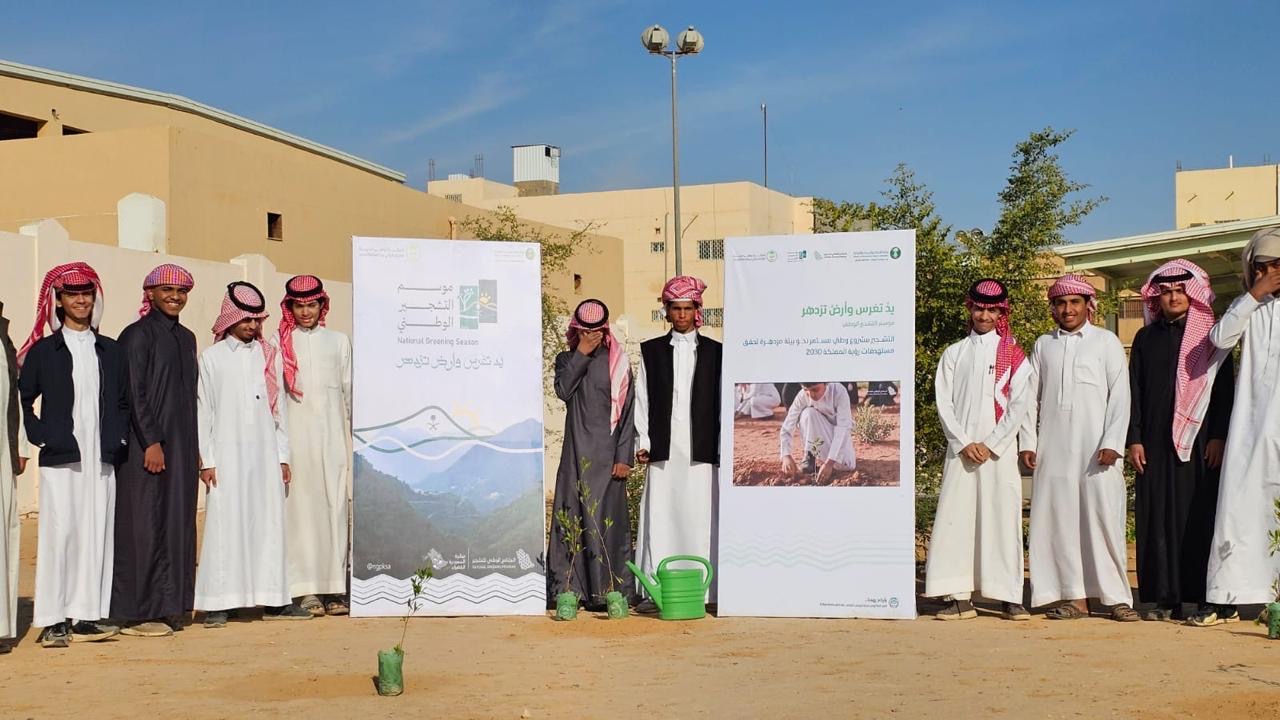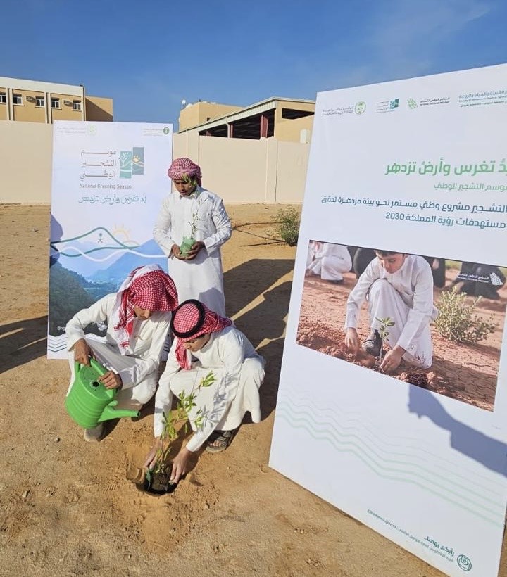 قام مكتب وزارة البيئة والمياه والزراعة بمحافظة العرضيات، بالتعاون مع المركز الوطني لتنمية الغطاء النباتي ومكافحة التصحر، بتنفيذ مبادرة بيئية احتفاءً باليوم الوطني السعودي الـ95، وذلك بالشراكة مع مدرسة العز بن عبد السلام المتوسطة ومدرسة نمر الابتدائية والفصول الفكرية.