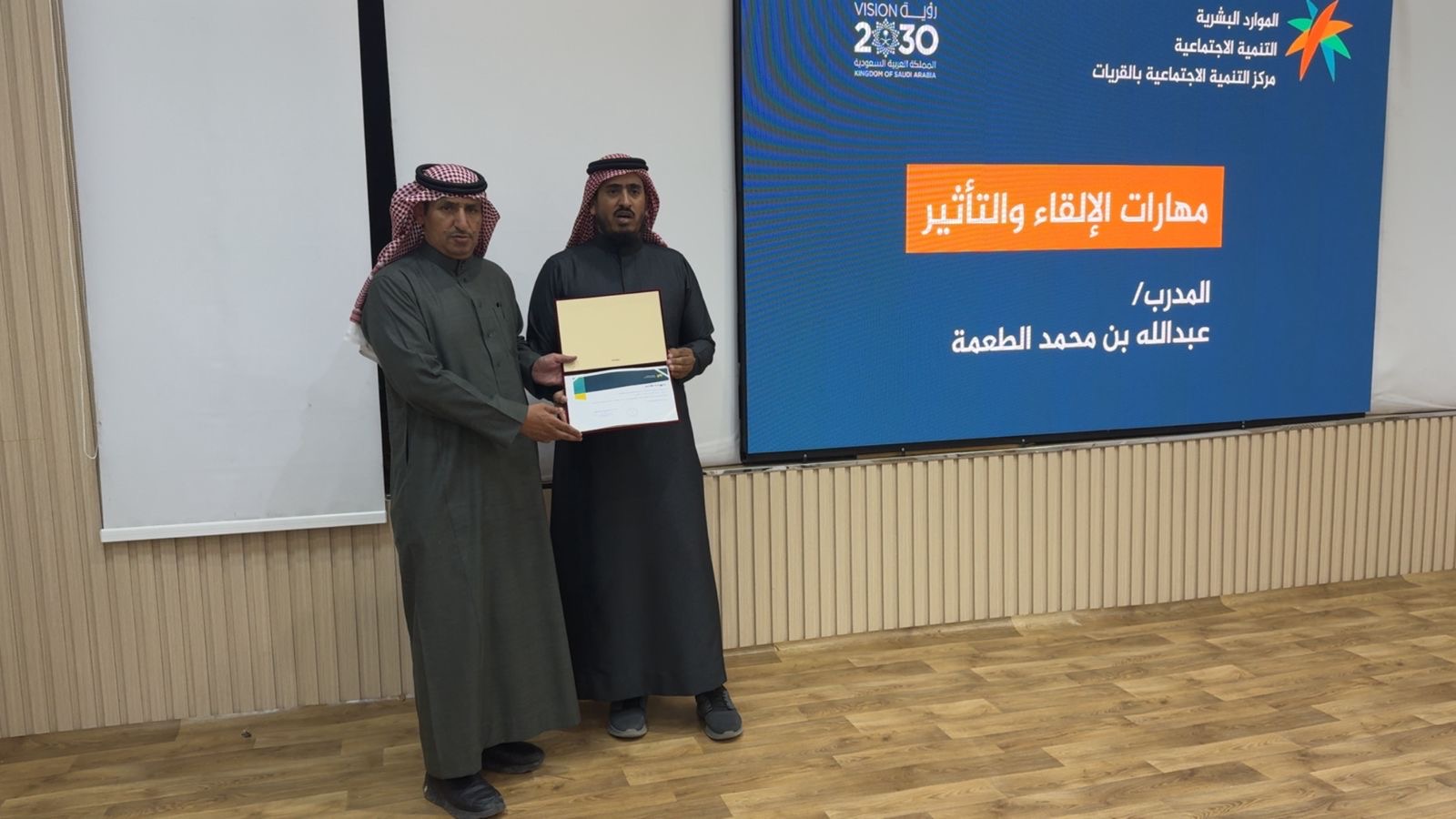 وفي ختام البرنامج، قدّم مدير مركز التنمية الاجتماعية بالقريات شكره وتقديره للمدرب على جهوده ومساهمته في دعم تنمية المجتمع من خلال تعاونه مع المركز.