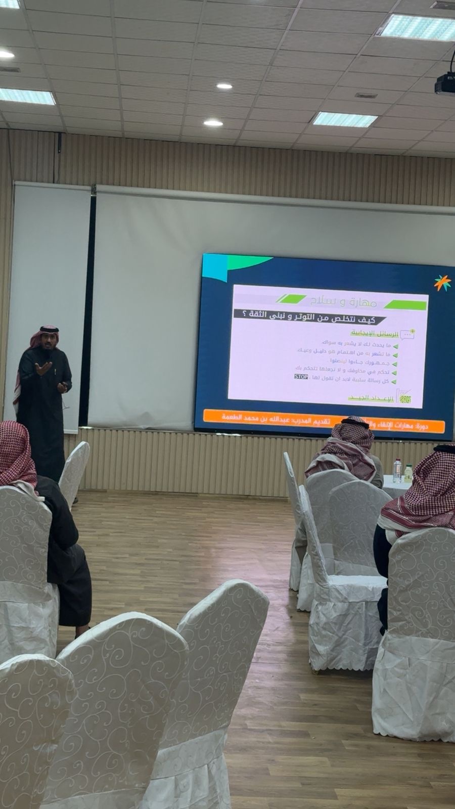 أقام مركز التنمية الاجتماعية بمحافظة القريات دورة تدريبية بعنوان «مهارات الالقاء والتأثير»،للمدرب / عبدالله محمد الطعمه وذلك ضمن برامج المركز التي تهدف إلى تنمية المهارات الشخصية وتعزيز الوعي الذاتي لدى المستفيدين. حيث تناول المدرب عددًا من المحاور التفاعلية المرتبطة بمهارات الالقاء والتأثير، بالإضافة إلى استعراضه مهارات الخطابة والإلقاء وفن إيصال الأفكار بوضوح وإقناع الجمهور والإعتماد على عناصر أساسية مثل ا الصوت وتنوعه ولغة الجسد والتواصل البصري كذلك التنظيم المنطقي للمحتوى والتحضير الجيد بالإضافة إلى فهم الجمهور وتجاوز القلق، وكلها مهارات تبنى بالتدريب المستمر لتنمية الثقة وتحقيق أهداف التواصل، وهو أمر ضروري للنجاح المهني والشخصي.